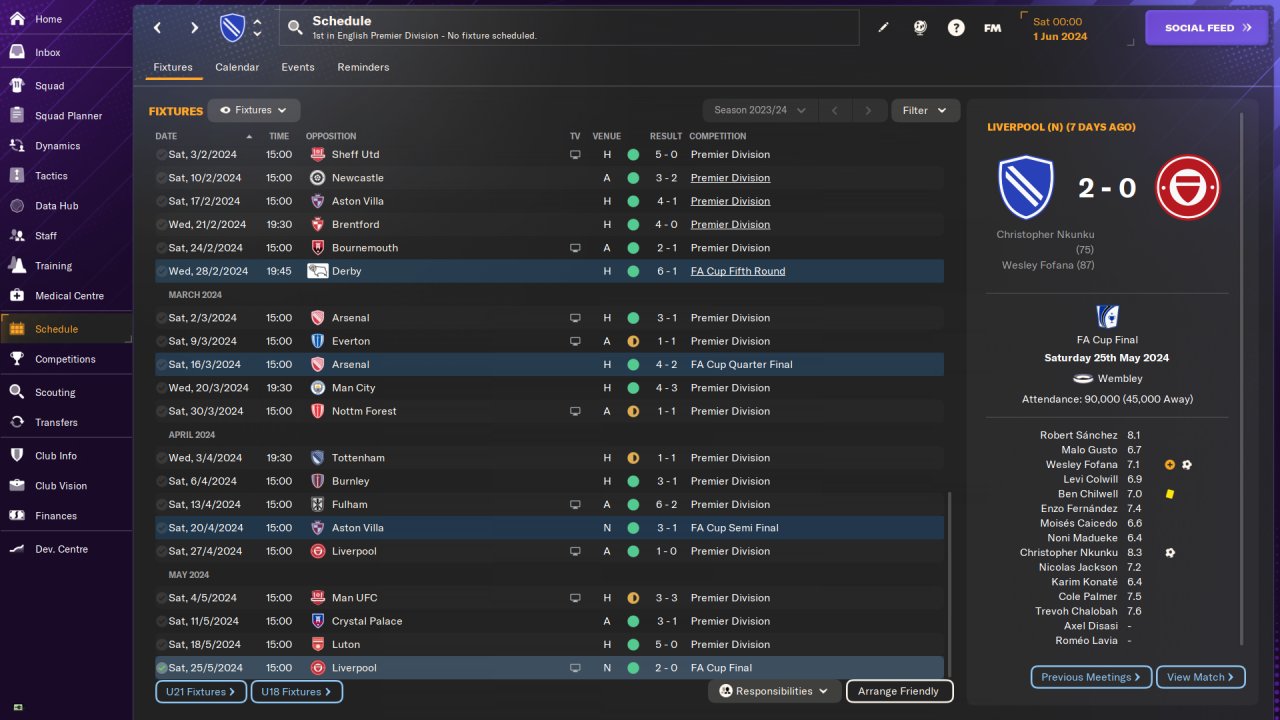 flexible 4231 with a lot of roam, PL plus FA CUP win